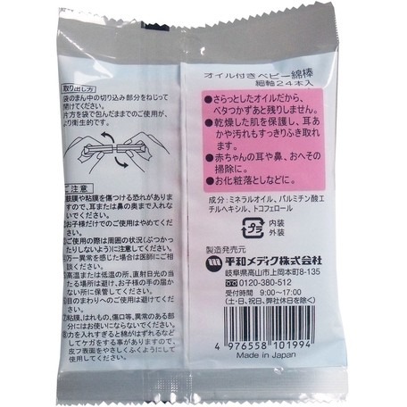 蘊含礦物油!呵護寶寶嬌嫩肌膚。也可用於卸妝。● 獨立包裝,衛生安全。● 輕盈的油性配方,不油膩,不留殘餘。● 保護乾燥肌膚,有效去除耳垢和污垢。● 可用於清潔寶寶的耳朵、鼻子和肚臍。● 也可用於卸妝等。● 100% 天然棉